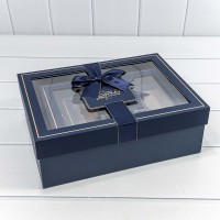 Коробки Прямоугольные Набор 1/3 33,5*25*11,5 с окошком и бантом Тёмно-синий 1/12 Арт: 721306/4