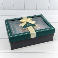 Коробки Прямоугольные Набор 1/3 33,5*25*11,5 с окошком и бантом Синевато-зелёный/Чёрный 1/12 Арт: 721306/6